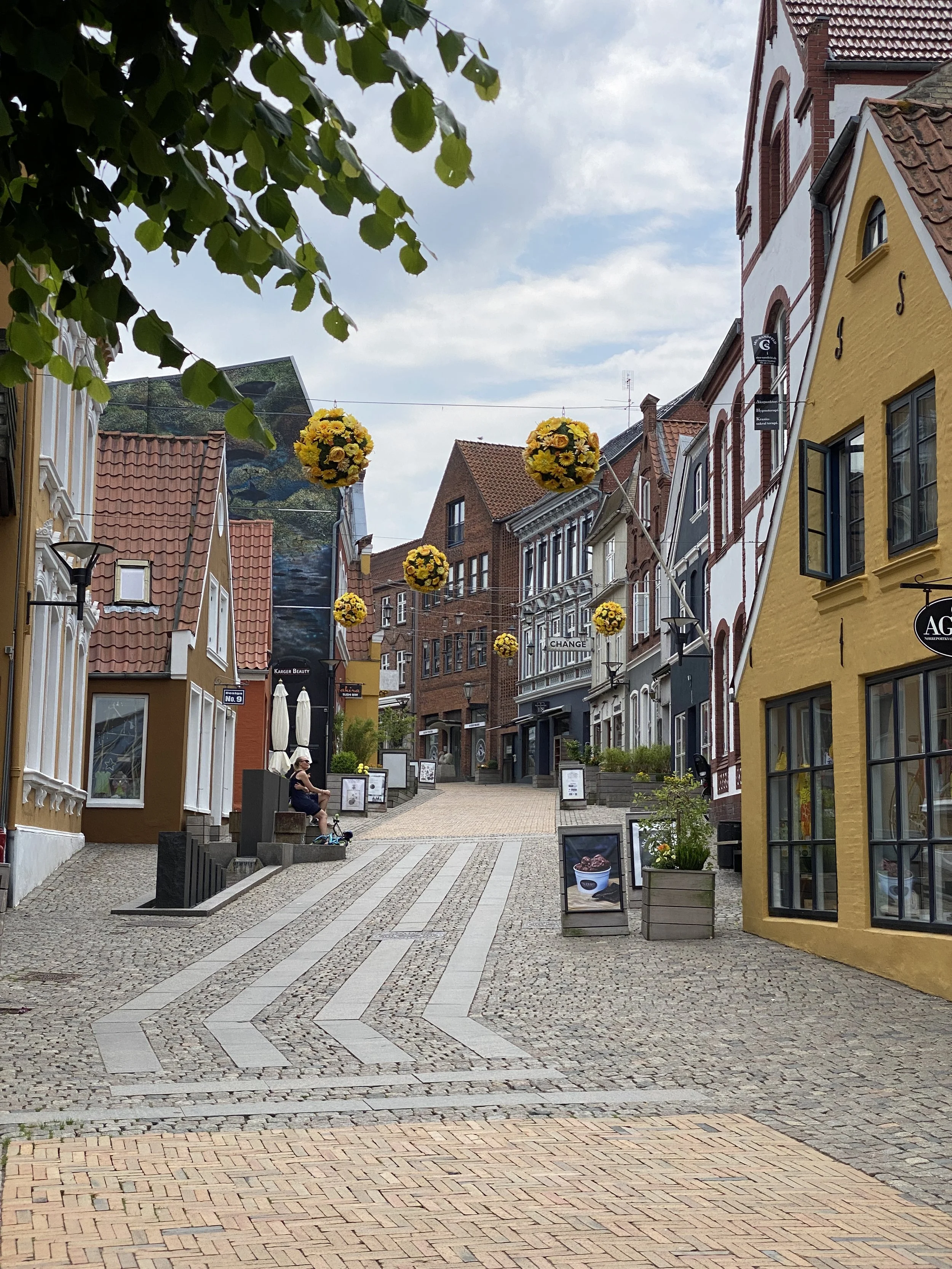 Aabenraa is a pretty town centre raised slightly away from the harbour front. Plenty of decorations prior to the visit of the Tour de France.