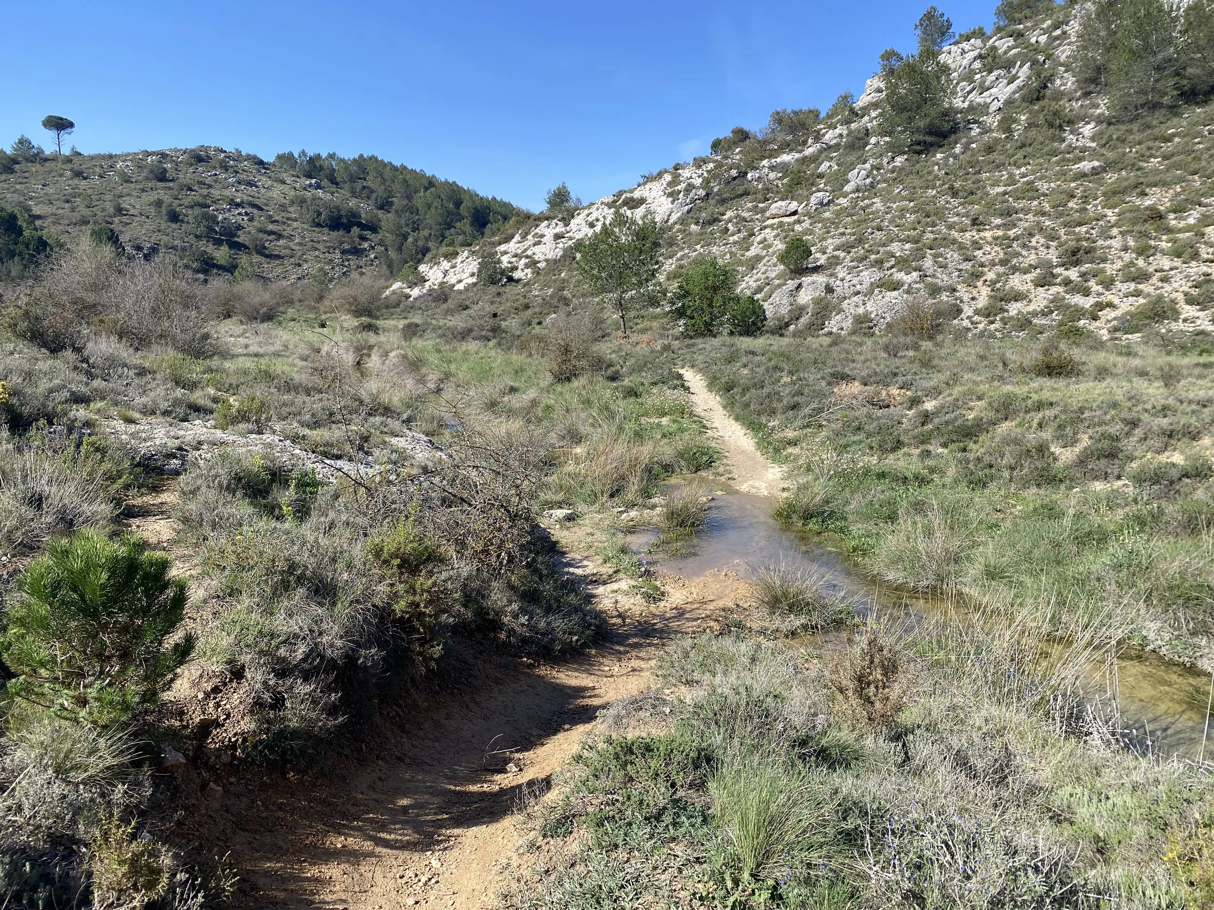 My big memory of this stage was the hard off-road out of Bocairent on loose rocky terrain, descending kind of scary steep double track into a rather forgotten valley with a rough path at the bottom. In that valley there’s the remains of mills with history behind them.