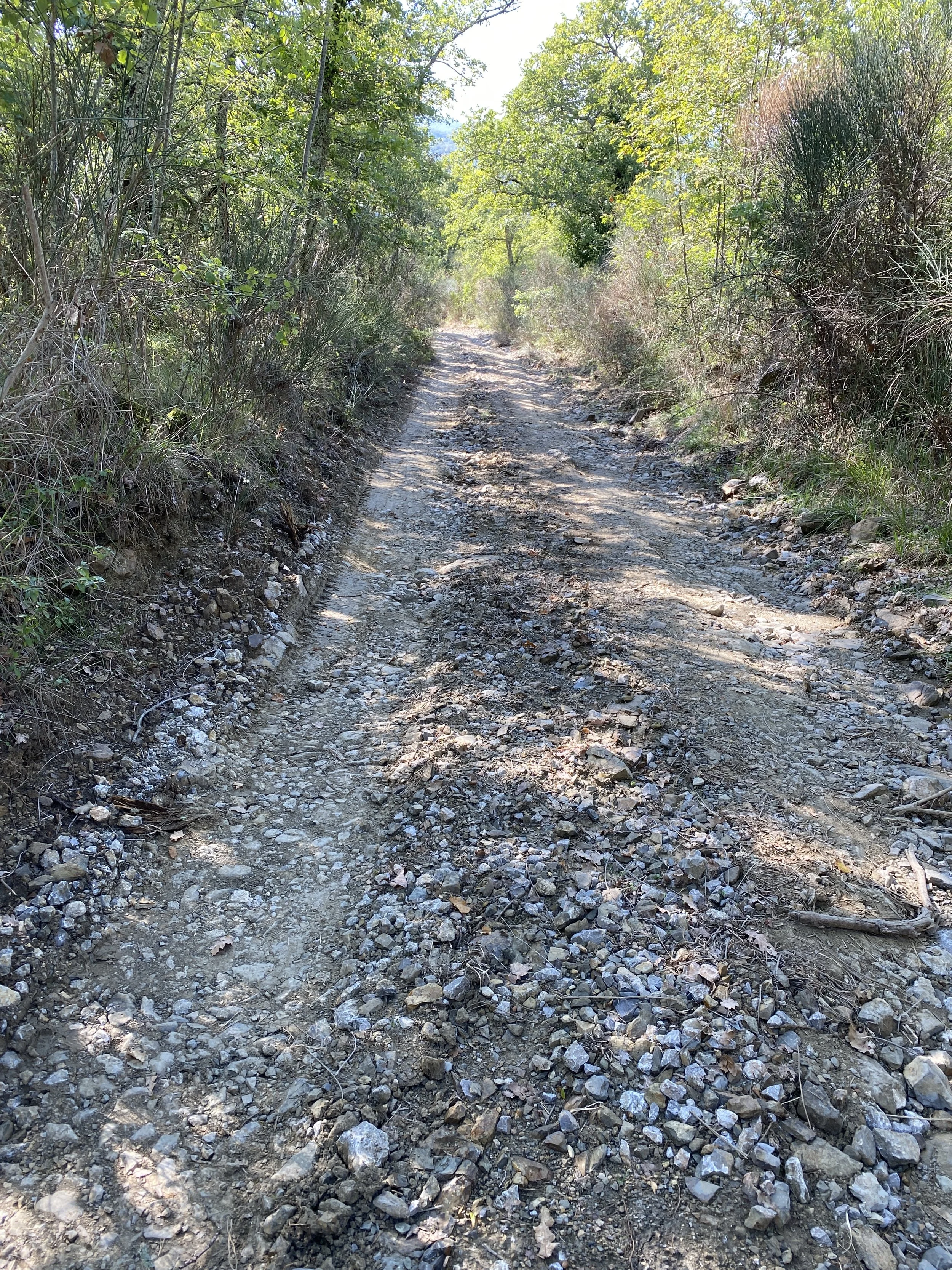 The route down the hill after that. This was more of a gamble as it’s not on any real route maps. But Stava heat maps showed a few people going that way. This isn’t gravel; perhaps best described as very rough double track. You’d not be cycling up this but it was great fun navigating the big rocks and ruts.